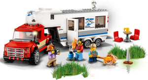 Fahr mit deiner Familie und dem LEGO® City Pickup & Wohnwagen ins Grüne. Mit großem Wohnwagen mit seitlicher Öffnung, Tür und abnehmbarem vorderen Dach für Zugang zum Schlafbereich, herausnehmbaren Möbeln und separater Stütze zum Alleinstehen, plus Pickup-Transporter mit abnehmbarem Kabinendach und Bett sowie Wohnwagenkupplung. Dieses Unterhaltungsspielzeug für Jungen und Mädchen enthält 3 Minifiguren und eine Krabbenfigur.