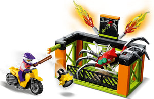 - Inhalt des Sets: Alles, was Kinder brauchen, um die Module des Stunt-Parks mit 2 Rampen, Hindernissen, Flammen und Spinnenkäfig sowie das Stuntbike mit Schwungrad zu bauen. Und natürlich die Minifigur Tread Octane aus der LEGO® City TV-Serie.