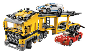 Baue den ultimativen Autotransporter mit einer Länge von 50 cm, funktionierender Lenkung und zwei Autos zum Transportieren. Es gibt sogar noch Platz für ein drittes Auto, z. B. 6743 Grüner Flitzer. Das 3-in-1-Modell lässt sich auch in einen starken Abschleppwagen oder einen mobilen Kran umbauen.