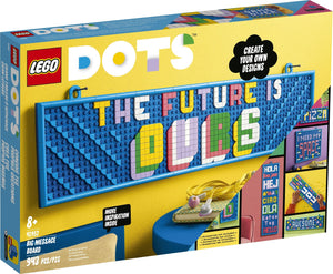 LEGO® DOTS Großes Message-Board – eine völlig neue „Leinwand“ für deine ganz persönlichen Botschaften! Verbinde die Platten mithilfe der Rahmenelemente, benutze die Steinchen für eigene Designs und Botschaften und häng das Message Board auf, wo es dir gefällt. Hol dir für weitere coole Designs das separat erhältliche Ergänzungsset XXL – Botschaften (41950). Auch verschiedene Formen sind möglich: Hochformat, Querformat oder Quadrat!