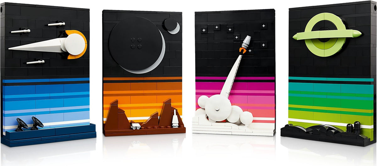 LEGO® Ideas Geschichten aus dem Weltraumzeitalter (21340) ist genau das richtige Bauset, um dich deine Nachbrenner abschalten und dich durchs Weltall schweben zu lassen. Das Set beinhaltet 4 zusammenfügbare 3D-Postkarten mit Motiven, denen Science-Fiction-Mythen, Filme, Bücher und Poster aus den 1980er-Jahren als Vorbild dienten. Erschaffe ebenso coole wie minimalistische Darstellungen einer Sternwarte, einer Mondbasis und einer Mondfinsternis, eines Spaceshuttles im Weltall und eines schwarzen Lochs – aus LEGO Steinen.