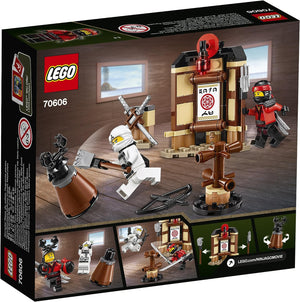 Trainiere zusammen mit den Ninjahelden im Dojo. Das Set „Spinjitzu-Training“ zu THE LEGO® NINJAGO® MOVIE™ enthält eine Dojo-Wand mit einer Schriftrolle und 2 abnehmbaren Stäben, einen Ausrüstungsständer mit 2 abnehmbaren Katanas, eine Trainingsstation, eine Garmadon-Trainingspuppe sowie 2 Minifiguren.