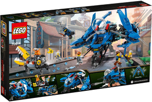Mit dem aufregenden Set „Jay‘s Jet-Blitz“ zu THE LEGO® NINJAGO® MOVIE™ kannst du nachspielen, wie Jay Ed und Edna vor der Krabbe rettet, die zu den Haimonstern gehört. Der Jet ist mit einem Griff versehen, um ihn ganz einfach und sicher greifen und superschnell fliegen lassen zu können. Darüber hinaus verfügt er über ein aufklappbares Minifiguren-Cockpit, einen federunterstützten Shooter und eine kreiselnde Elektroscheibe, die per Auslöser betätigt wird. Die Krabbe hat bewegliche Beine, eine Greifschere und einen 6-schüssigen Schnellshooter. Außerdem enthält das Set 6 Minifiguren mit unterschiedlicher Ausrüstung, um Rollenspiele mit spannender Action zu ermöglichen.