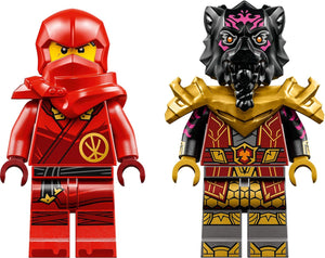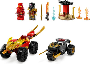 Verfolgungsjagd mit Kais Flitzer und Ras' Motorrad (71789) ist das perfekte Set, um Kindern ab 4 Jahren die faszinierende NINJAGO® Welt vorzustellen und ihnen zu zeigen, wie viel Freude das Bauen mit LEGO® Steinen macht. Das fantastische Spielset beinhaltet ein Drachenauto, ein Quad, die beiden Minifiguren Kai und Lord Ras sowie einen blauen Blitz in einem Halter und 2 Flammenelemente, um Kinder spannende Actionszenen aus der TV-Serie NINJAGO Dragons Rising nachstellen zu lassen.