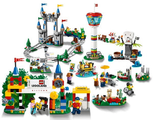 • Das Set beinhaltet den legendären LEGOLAND® Eingang, Miniland, einen Aussichtsturm sowie ein U-Boot, ein Piraten- und ein Burgfahrgeschäft, ein Geschäft, einen Imbissstand und einen Fahrkartenschalter.