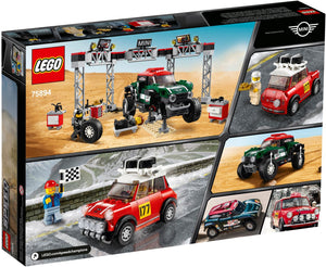 Veranstalte packende Rallye-Rennen zwischen einem Oldtimer und einem modernen Auto: mit dem coolen LEGO® Speed Champions Set (75894) Rallyeauto 1967 Mini Cooper S und Buggy 2018 Mini John Cooper Works! Das Rallyeauto 1967 Mini Cooper S umfasst einen Dachträger mit 2 Ersatzreifen, genau wie das Original. Der Buggy 2018 Mini John Cooper Works hat eine Federung, mit der er über raues Gelände fahren kann. Spiele aufregende Rallye-Szenen nach – mit den 4 LEGO Minifiguren und einer voll ausgestatteten Boxenstopp-Station. Mit dabei ist eine Hebebühne zum Bauen, ein Montagerollbrett, Werkzeughalter, verschiedene Werkzeuge sowie Bildschirm-Elemente.