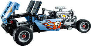 Setze dich hinters Steuer dieses ultracoolen LEGO Technic Hot Rods und bringe den Asphalt zum Glühen! Dieses besondere Modell verfügt über viele realistische Details: sichtbarer V6-Motor mit beweglichen Kolben, funktionstüchtige Lenkung, robuste Reifen, cooles Faltdach und heiße Karosserie mit Totenkopf- und Flammendekor. Fertig, ... los! Kann auch zu einem Ralley-Rennwagen umgebaut werden.