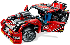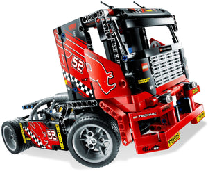 Mach dich bereit für das ultimative Truck-Rennen! Der Renn-Truck kann mit dem Rad oberhalb der Fahrerkabine gelenkt werden, die Türen lassen sich öffnen, die Fahrerkabine neigt sich und die Kolben des V8-Motors bewegen sich, sobald der Truck fährt. Lässt sich in einen Rennwagen umbauen.