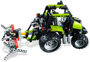 Fahre mit dem kräftigen Traktor raus auf das Feld! Lenke das Fahrzeug mithilfe des Drehknopfes, senke anschließend das Pflugwerkzeug und drehe die Blätter! Kann in einen Buggy mit Lenkung und detailliertem Motor mit beweglichen Kolben umgebaut werden.
