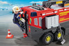 Das Licht- und Soundmodul benötigt drei 1,5-V-Micro-Batterien (nicht enthalten). Auf der Rundumleuchte befinden sich zwei Knöpfe (1x Sound und 1x Licht). Über den Schalter seitlich am Modulgehäuse im Batteriekasten kann zwischen den beiden verschiedenen Sirenensounds gewechselt werden. Licht (2 Minuten) und Sound (12 Sekunden) verfügen beide über eine Auto-Power-Off-Funktion. Das Fahrzeug hat eine Anhängerkupplung. Auf der Fahrerkabine ist Platz für drei Feuerwehrleute. Ausserdem ist jeweils ein Steckplatz für das Funkgerät sowie den Feuerlöscher vorgesehen. Die beiden grossen seitlichen Schubladen sowie das Fach unter der Klappe auf dem Dach bieten ausreichend Platz für die Feuerwehrausrüstung (wie z. B. Axt, Besen usw.). Der Löscharm des Fahrzeugs ist wie im Original sehr beweglich und gelangt auch an die niedrigsten Orte (z. B. unterhalb der Flugzeugtragflächen). Über die Leiter am Heck des Fahrzeugs gelangen die Feuerwehrleute auf das Dach des Fahrzeugs.